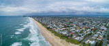 Aerial panorama of Gold Coast ocean coastline. Mermaid Beach, Queensland, Australia