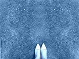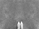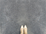 Woman Foot and Legs on Concrete Road, Beautiful Shoe Top View. Selfie of Feet in Fashion Nude High Heels Shoes Standing on Street from Above Background