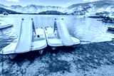 Boat pedal in the lake of Sanabria in Zamora (Castilla y Leon, Spain)