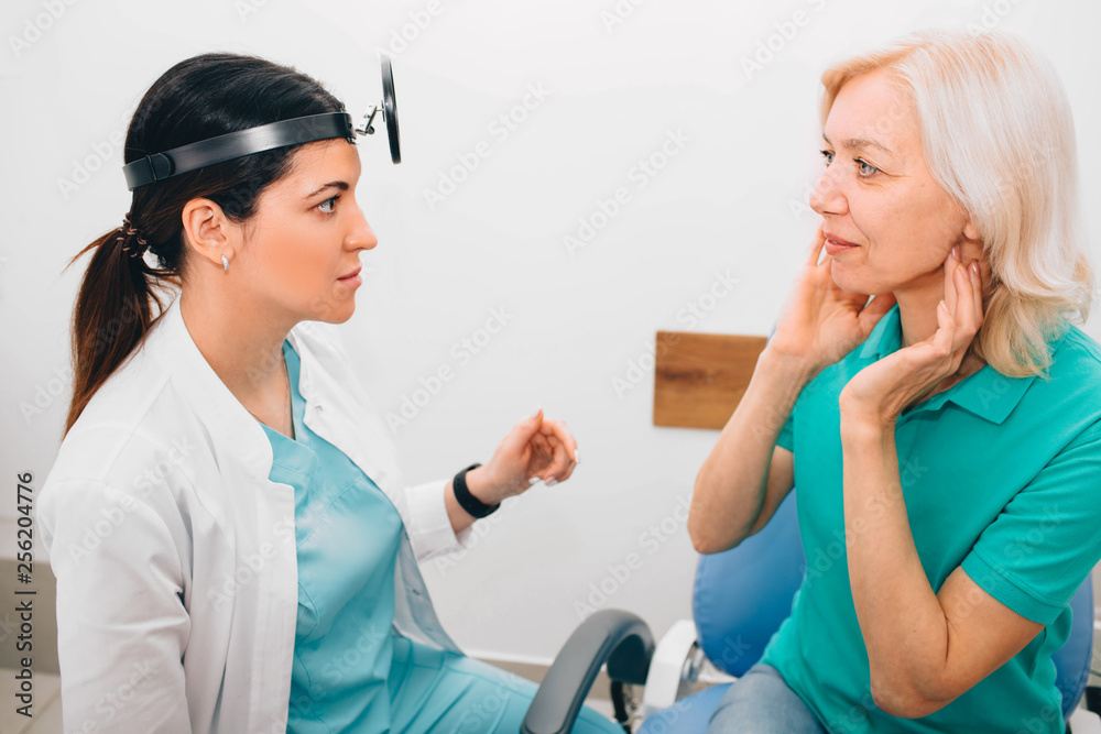 Doctor listens to the patient's complaints while the patient points to the Throat,