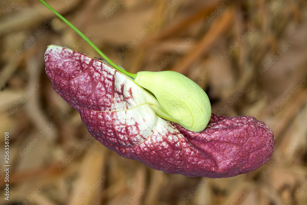 Flower bud of Brazilian Dutchman's pipe (Giant pelican flower) growing in Singapore