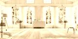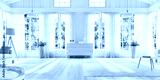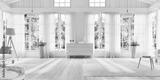 White interior design with large windows. Scandinavian interior design. For your creativity.