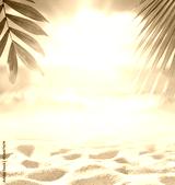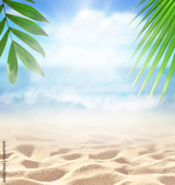 Sand with Palm and tropical beach bokeh background, Summer vacation and travel concept. Copy space