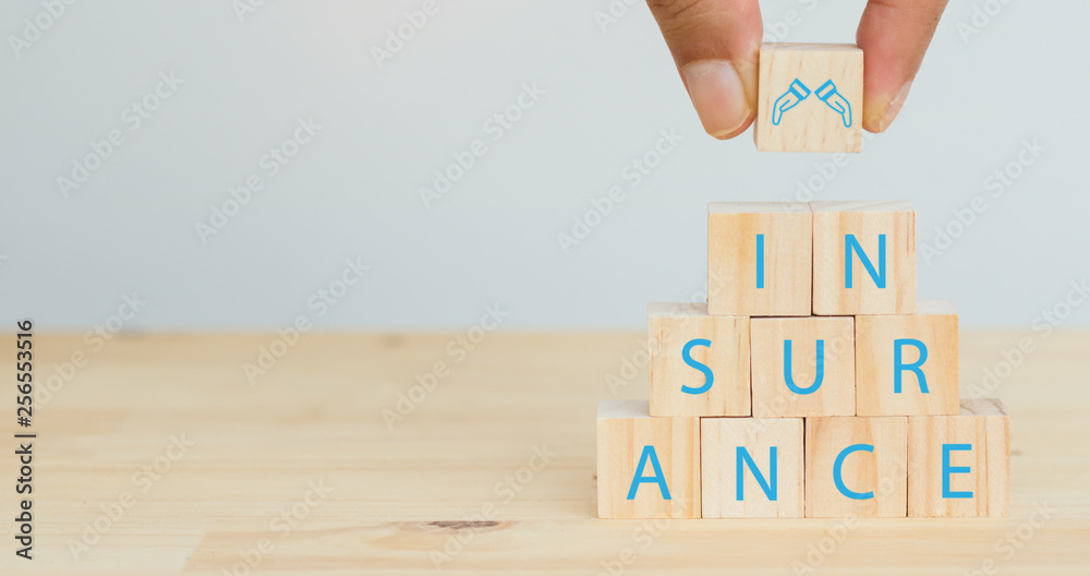 hand man try to put the cube wood that means insurance concept