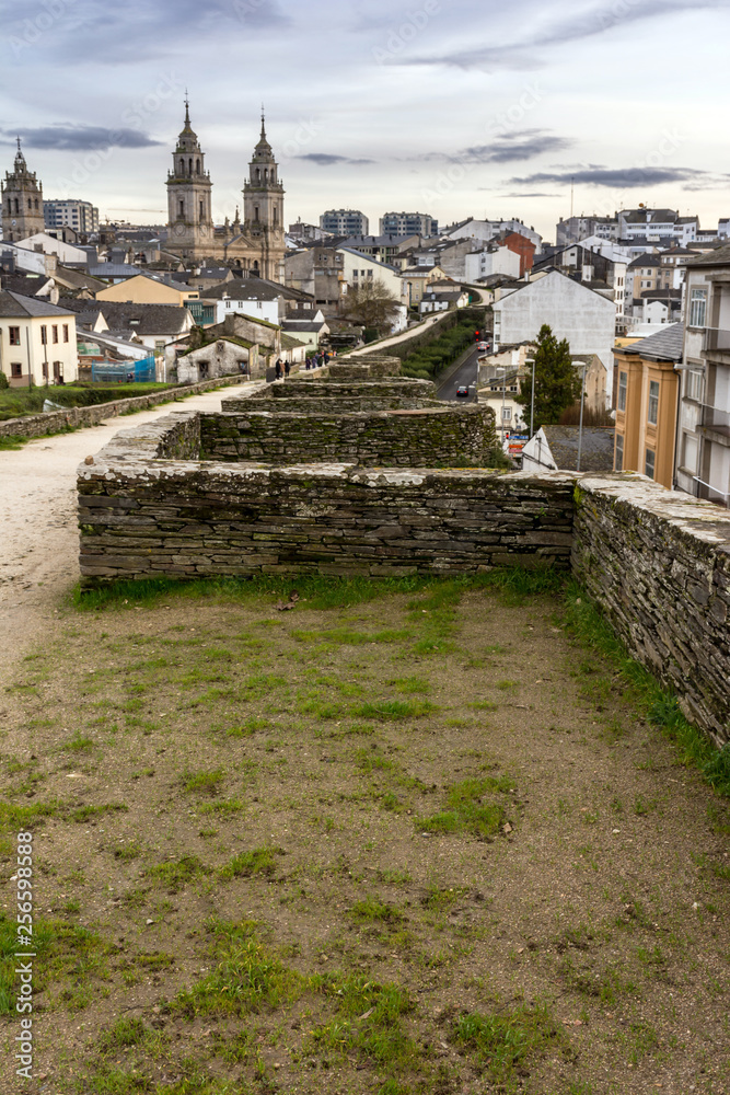 View of the Cathedral and the Wall of Lugo declared World Heritage by Unesco (Galicia, Spain)