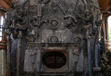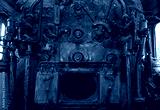 Part of the railway abandoned steam locomotive depot rusty old remnants. Steam boiler.