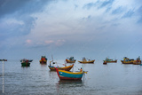 fishing village,Landscape with sea and traditional colorful fishing boats