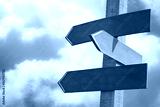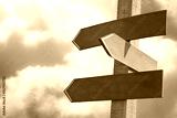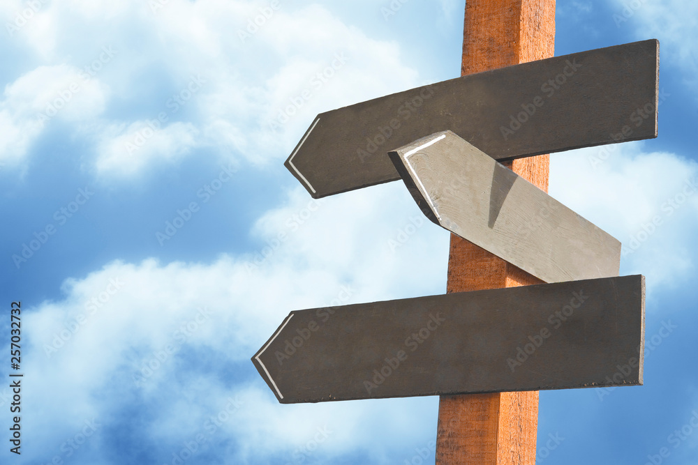 Blank wooden arrow signpost agaist a sky - concept image with copyspace