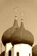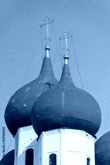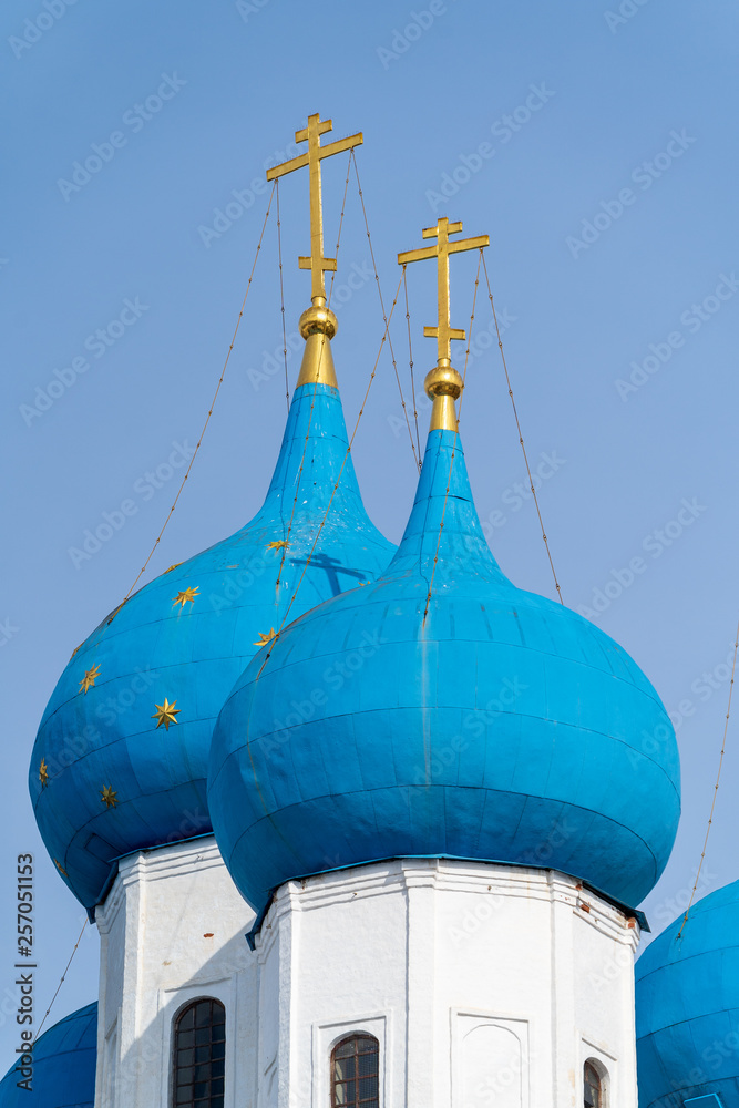 Blue domes of the Russian Orthodox Church in the Vysotsky monastery, Serpukhov city,Moscow region.