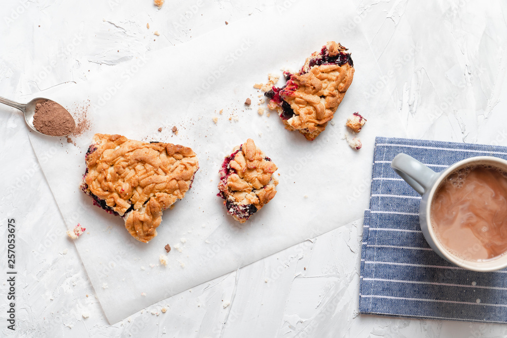 Stack of homemade pieces of cake with fresh jam.