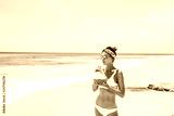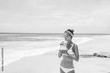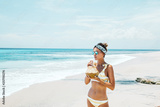 Woman drinking coconut on the tropical beach