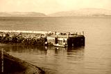 Ferry at sea two arrival and departure in open ocean