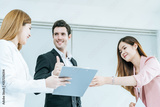 Startup business people group meeting, Young creative coworkers team working and discussing new plan project in office, entrepreneurs, brainstorming, Teamwork, analyze plans, professional investor.