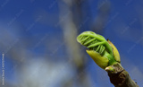 sich öffnendes feigenblatt vor blauem himmel in südeuropa