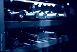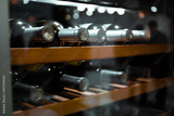 Storing bottles of wine in fridge. Alcoholic card in restaurant. Cooling and preserving wine.
