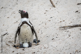 African penguin sitting on an egg.