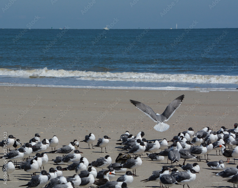 Laughing Gulls (Leucophaeus Atricilla) on Fernandina Beach, Fort Clinch State Park, Nassau County, Florida USA
