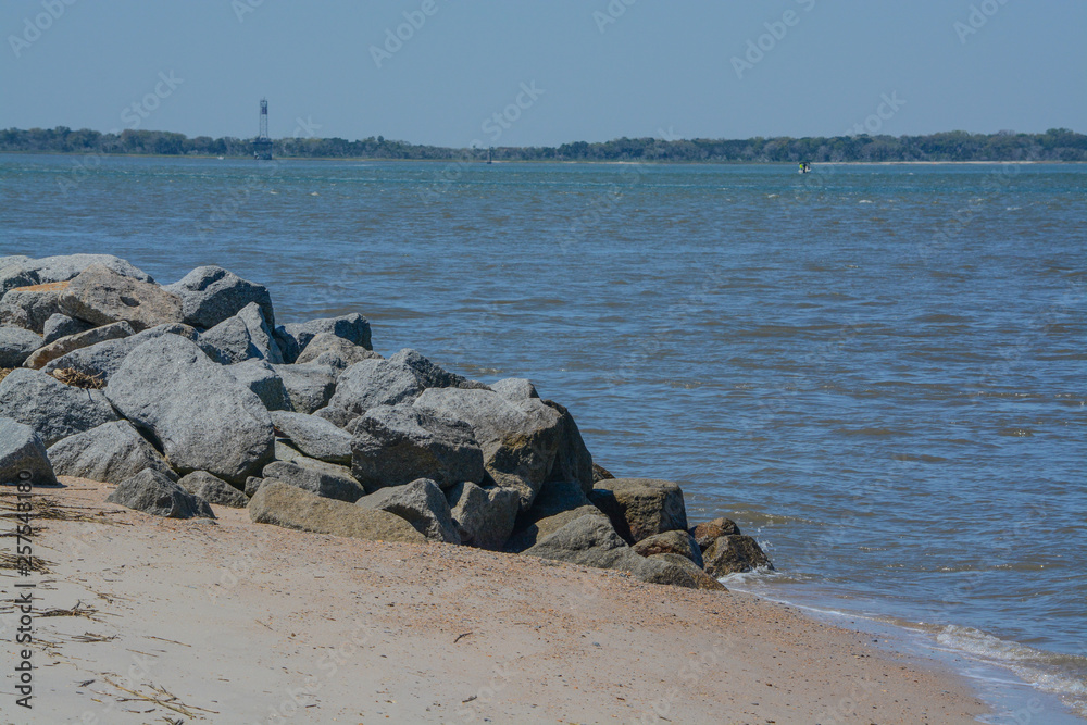 The Jetty Breakwater on Fernandina Beach, Fort Clinch State Park, Nassau County, Florida USA