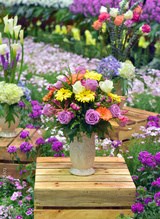 Flower in vase on wooden box show at flora exhibition, beautiful flowery pattern, garden decorative, art of bouquet design, flower bouquet design, flower bouquet style, flowery garden, flowering plant