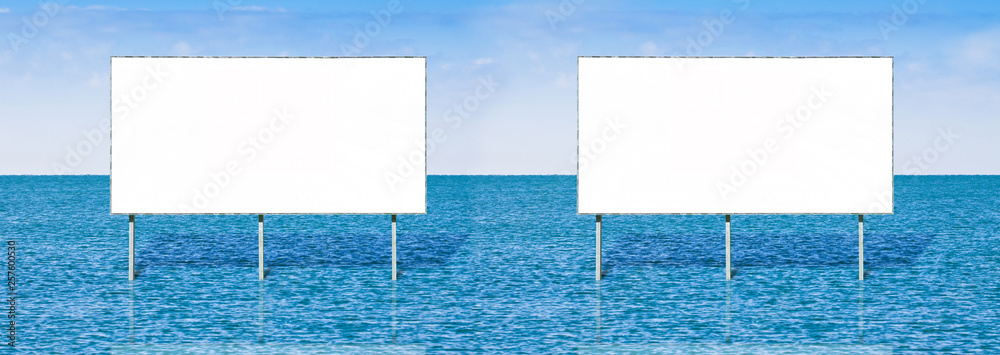Double blank advertising billboard against a seascape background - concept image with copy space