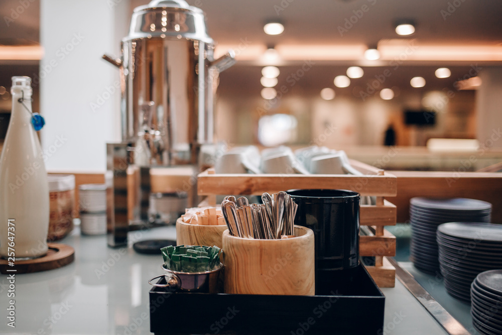 Set of coffee break in the hotel during conference meeting, with tea and coffee catering