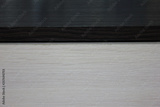Table edge of wooden dark and light white timber material for dresser, drawers or living room interior furniture. Minimalist cabinet design close up view of tabletop