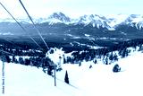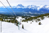 Skiers on Chairlift Up a Ski Slope in the Canadian Rockies