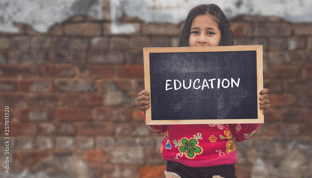 Indian Rural girls holding slate board