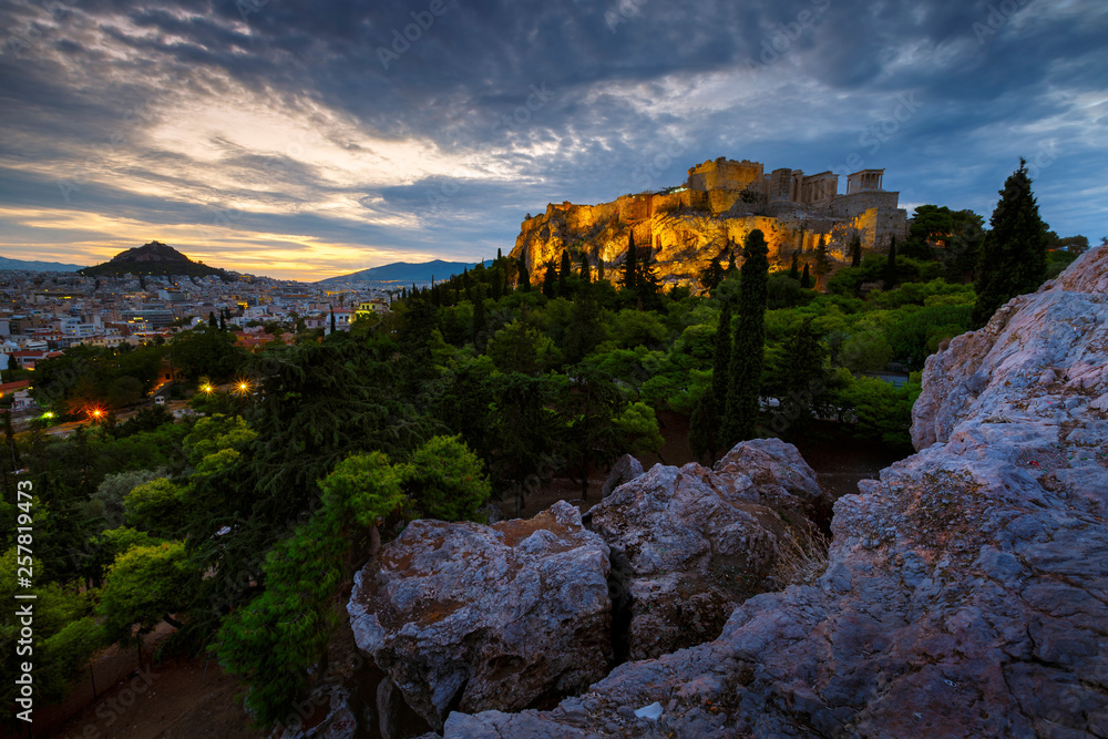 Acropolis and view of Athens from Areopagus hill, Greece.