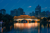 Anshun bridge on Jin River at night in Chengdu, Sichuan, China