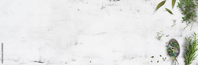 Various herbs on kitchen table