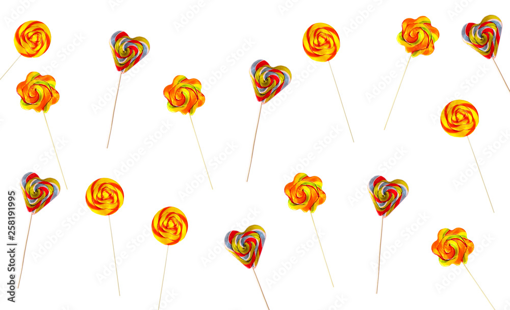 Set of colorful lollipops isolated on white background.