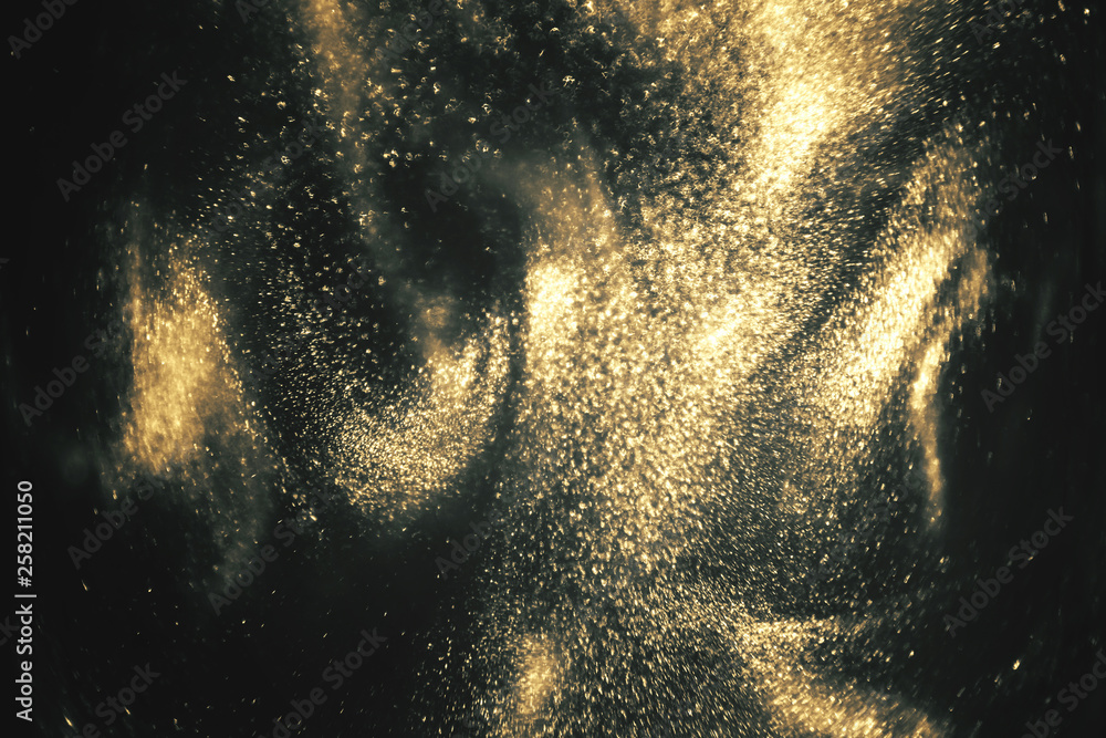 Abstract black and gold festive glitter shimmering magic luxury background. de-focused