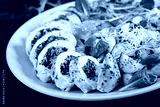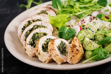 Baked chicken rolls with spinach and cheese on plate. Healthy lunch. Keto diet.