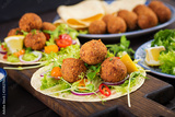 Tortilla wrap with falafel and fresh salad. Vegan tacos. Vegetarian healthy food.