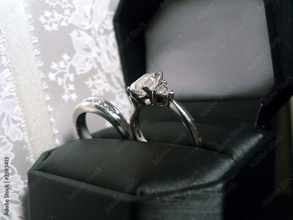 wedding ring and band - diamond and platinum in case 2