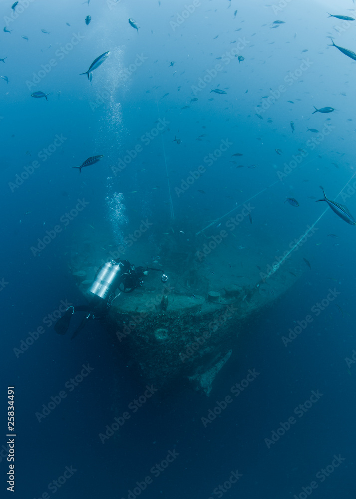 Scuba diver exploring Shipwreck SS Thistlegorm