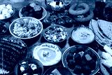 Middle eastern or arabic dishes and assorted meze, concrete rustic background. Falafel. Turkish Dessert Baklava with pistachio. Halal food. Lebanese cuisine
