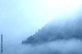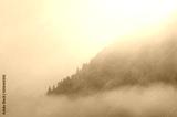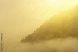 Fog and mountain morning landscape