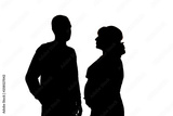 A pregnant woman and a man. Black silhouettes on white background. In isolation