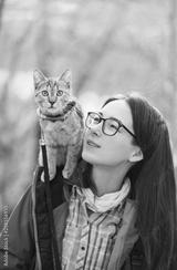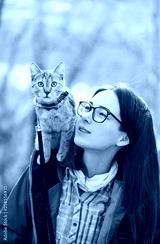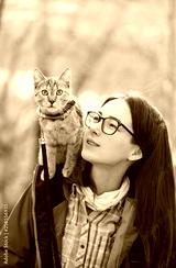 Traveler cat and woman outdoor.