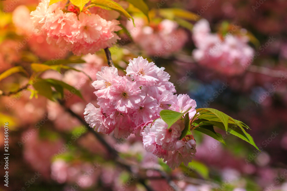 Spring awakening. Beautiful cherry blossom of sakura tree. Nature background.