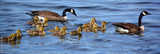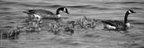 Canada goose (Branta canadensis) family is a large wild goose species with a black head and neck, white patches on the face, and a brown body. Native to arctic and temperate regions of North America