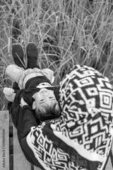 Happy little boy and his mother have a good time, fund and enjoy at coffee shop in green rice field. Trip to Thailand.