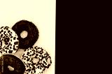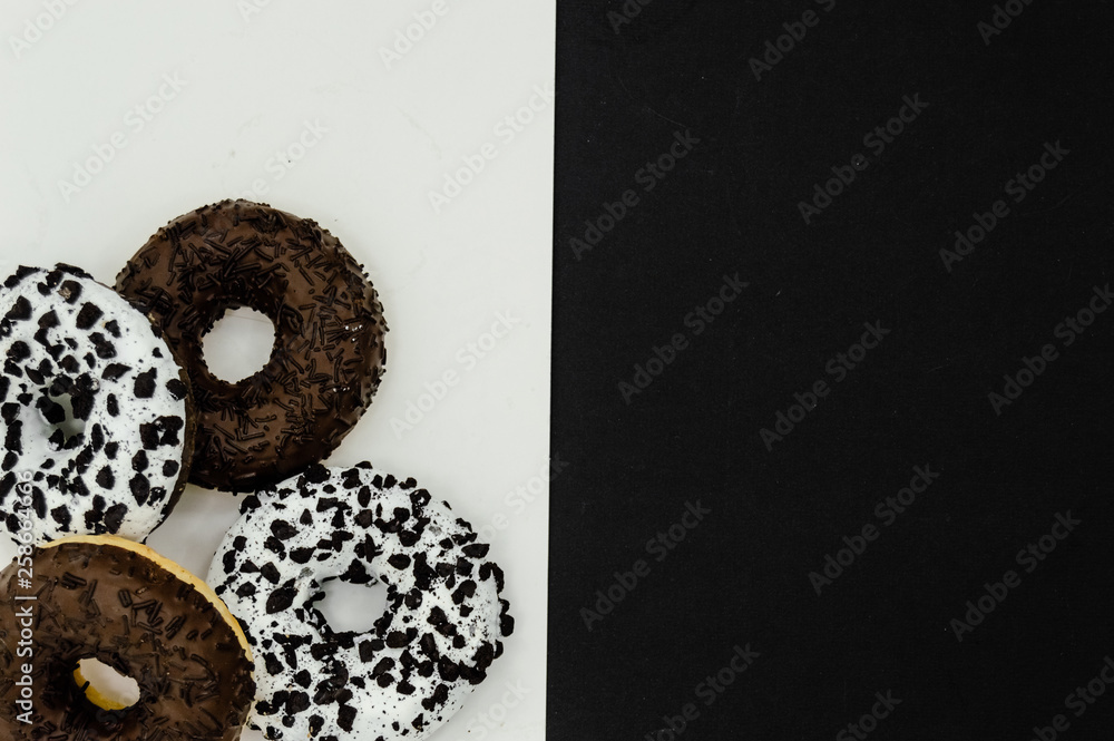Donuts with chocolate glazed with sprinkles donuts isolated on white black abstract background
