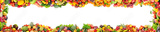 Wide panoramic frame of fresh vegetables and fruits isolated on white