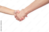 Shaking hands of two male people on background.