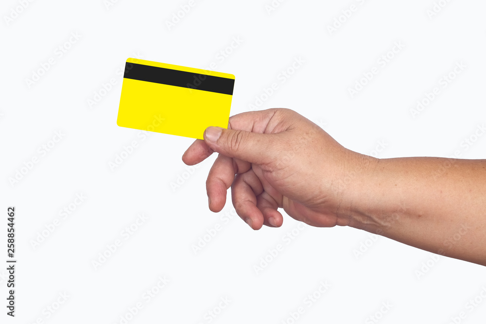 Credit card or debit card in hand,E money concept.