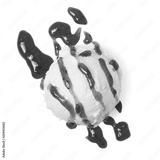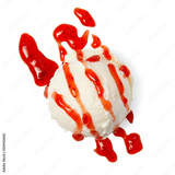 Vanilla ice cream scoop with strawberry sauce