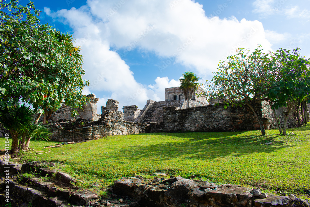 Old Ancient Ruins of pre-Columbian mayan City in Tulum
